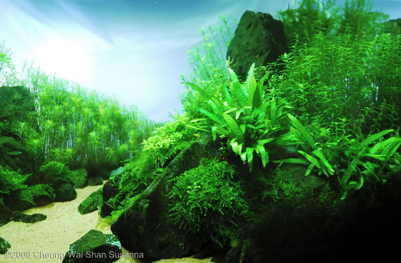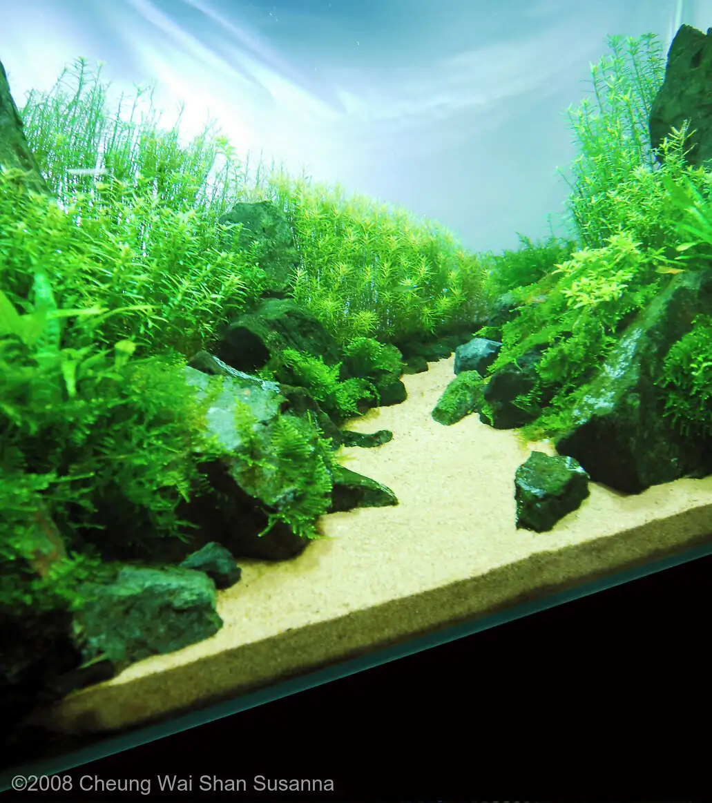 Your rockwork and basic structure are absolutely lovely. At this point in time your stem plants look a little sparse and "stemmy". Try allowing them to grow out into a more natural graceful shape. — Karen Randall