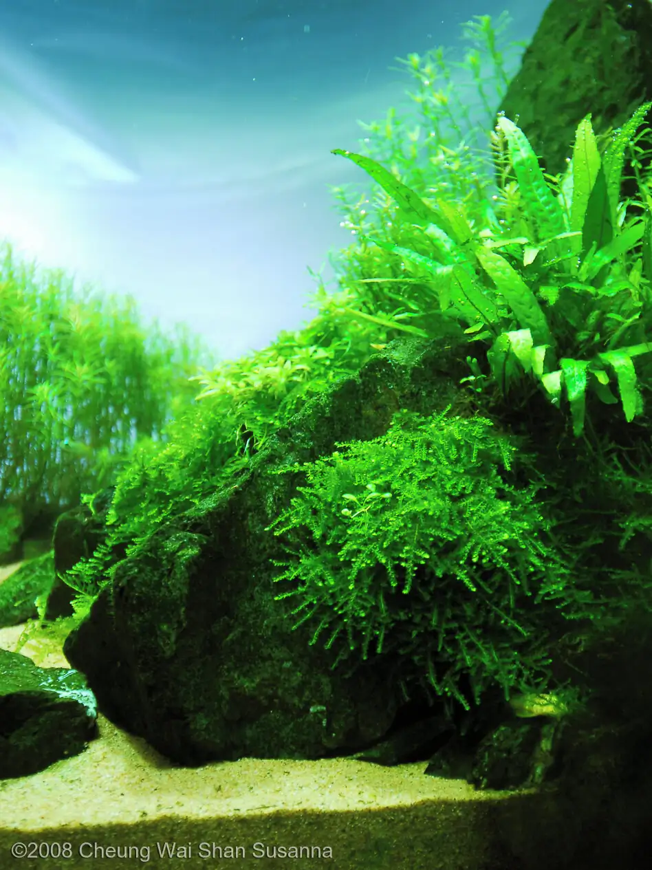 Superb rockwork and overall compoisition. The use of ferns and moss is very effective but some of the stems look a little too sparse. The fish also look almost invisible. These are minor niggles to what is otherwise an excellent aquascape - good work!