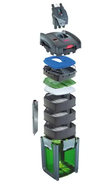 All essential accessories are included: suction pipe, nozzle pipe, outlet bend, EHEIM quality hose, pre-filter tray and installation accessories.