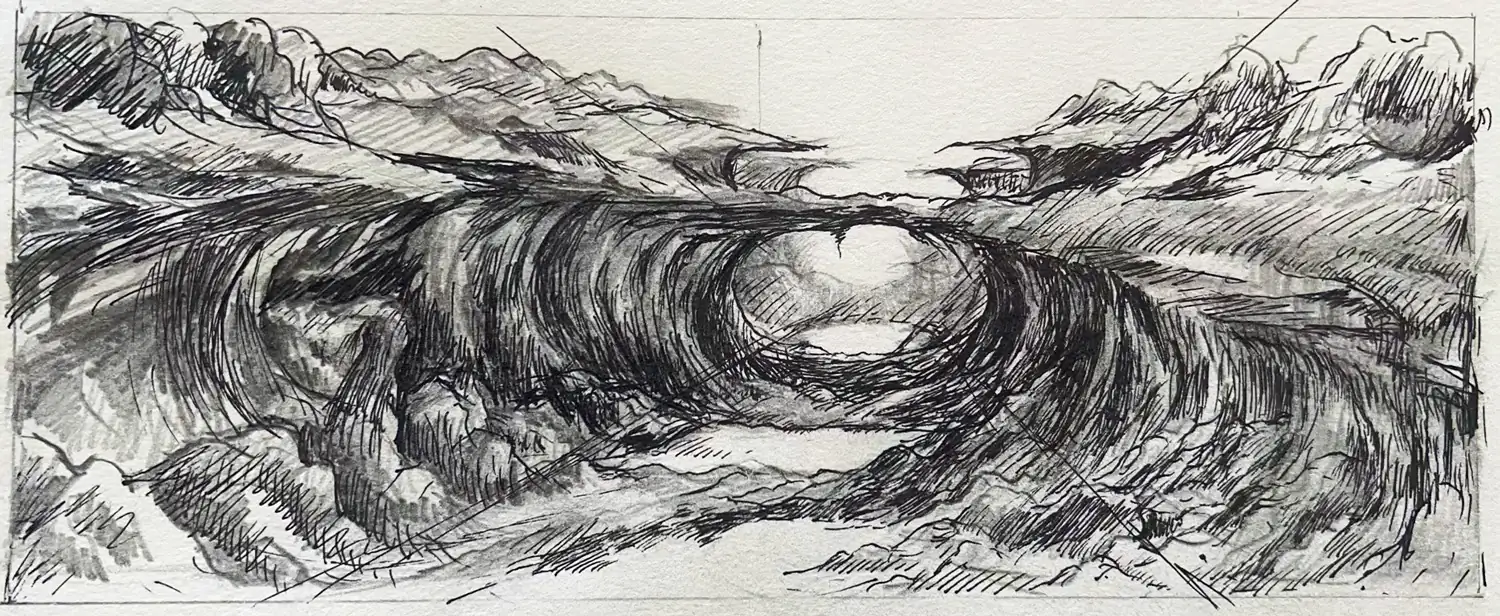 I started by sketching a canyon, then instilled into it the aquascape creation art form to give the whole composition an abstract and geometric beauty. In accordance with this vision, I endeavoured to give it a prominent vanishing point. This is another of it’s ideas.