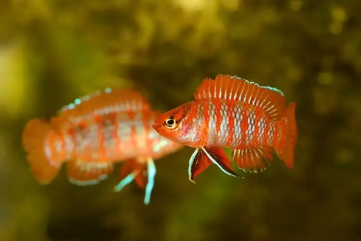 Given their small size, special consideration should be taken to provide the scarlet badis with an appropriate habitat. Small fish feel safe when they have hiding spaces. To mimic their natural habitat, a heavily planted aquarium is recommended as a home for the scarlet badis. This will allow all the fish to have adequate cover and places to feel safe. You can also recreate this with artificial plants and other décor items—just ensure adequate water flows through the various components so the tank water is aerated.