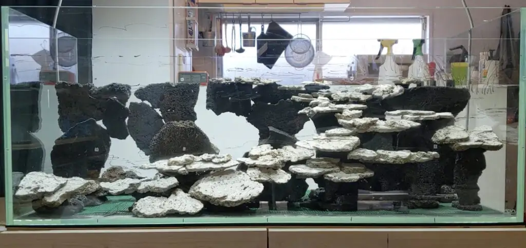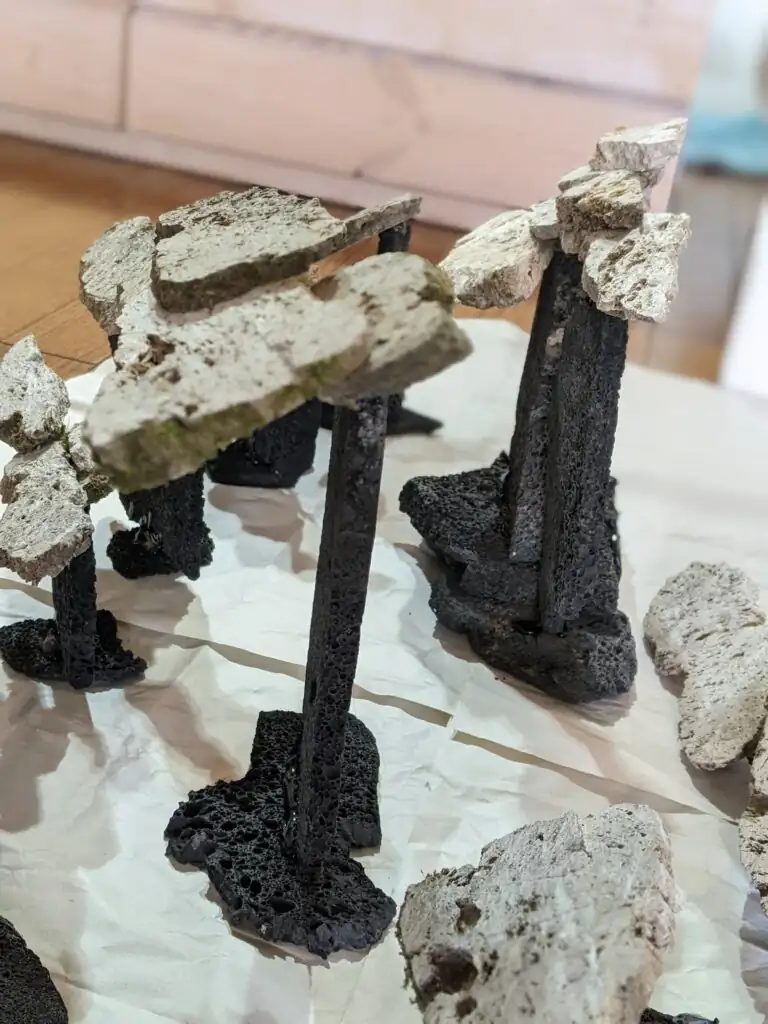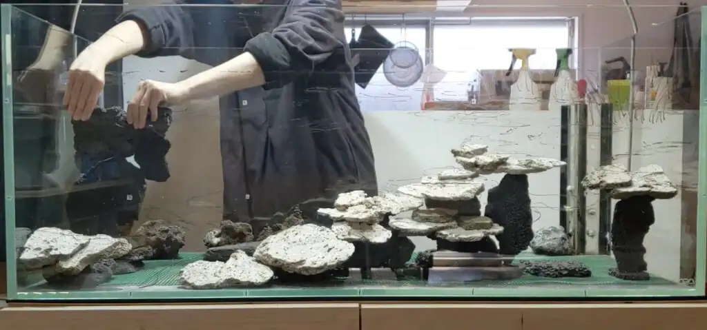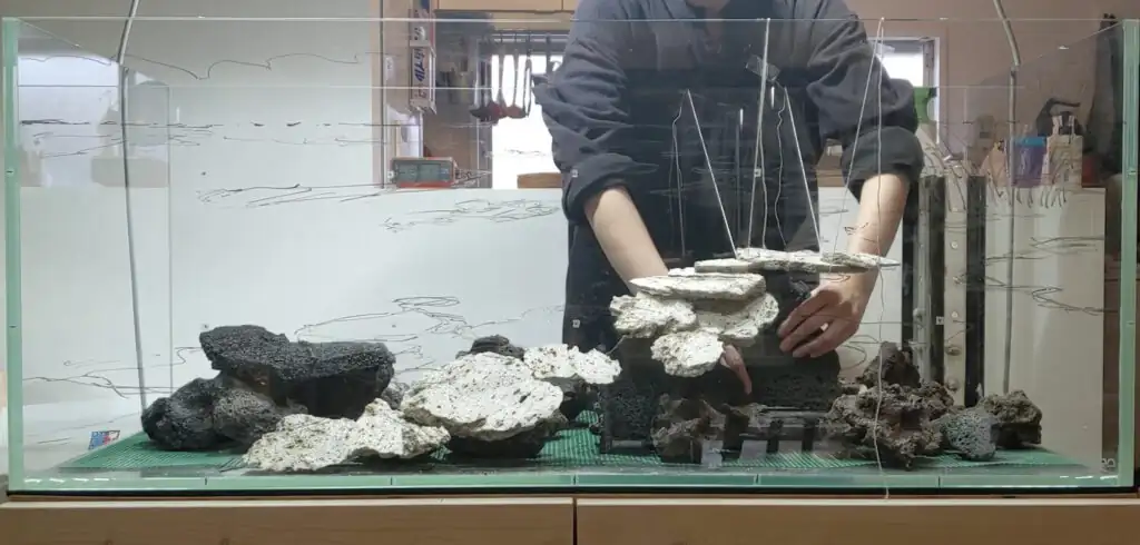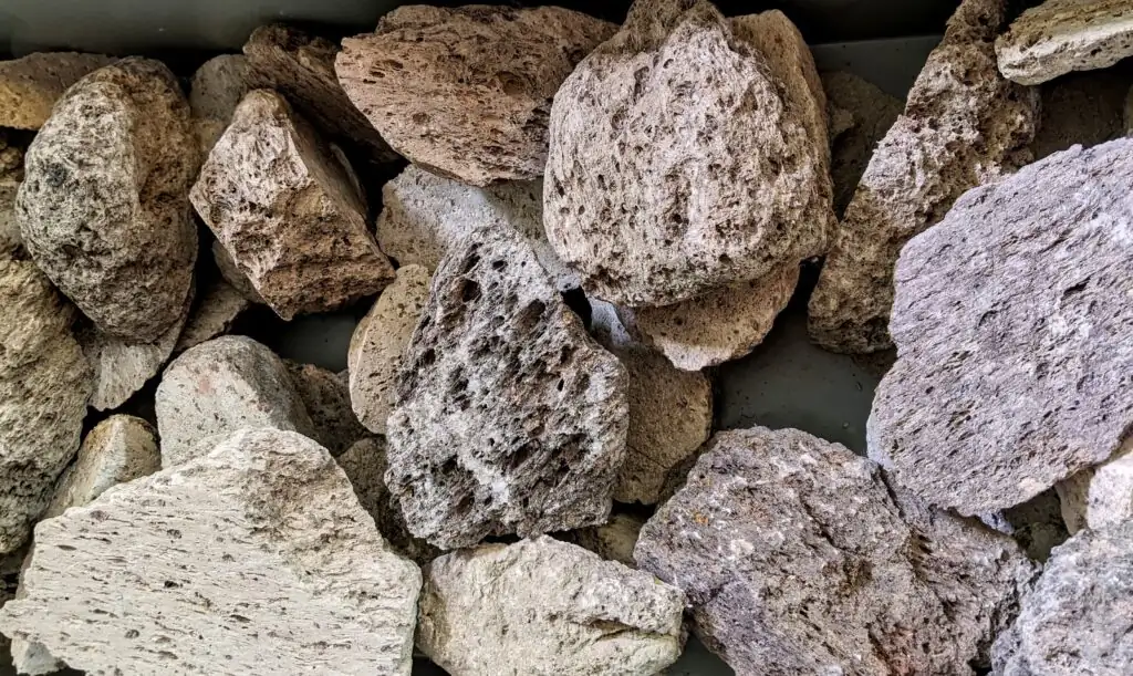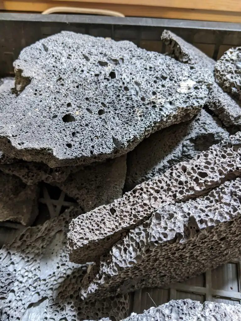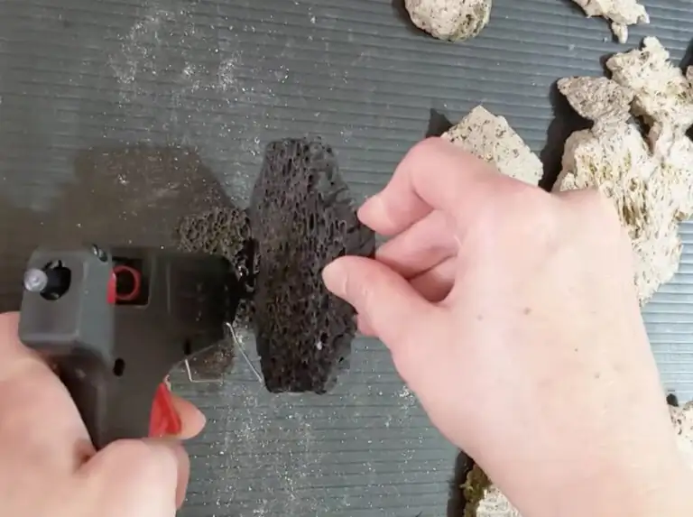 Glue the sliced pumice stones together with a glue gun. (Pumice stone is too light and will float on water, so it needs to be glued.)