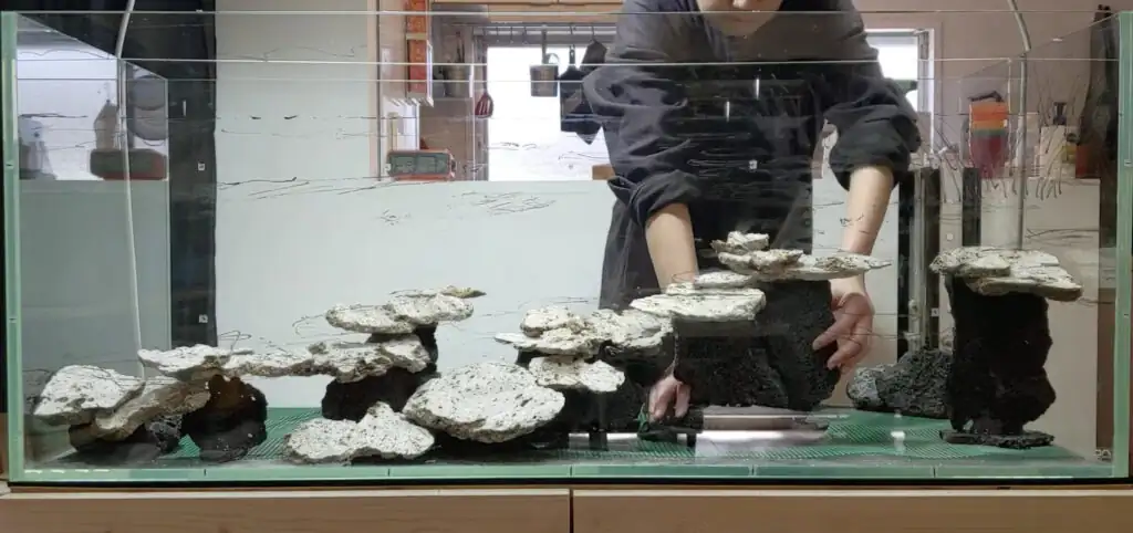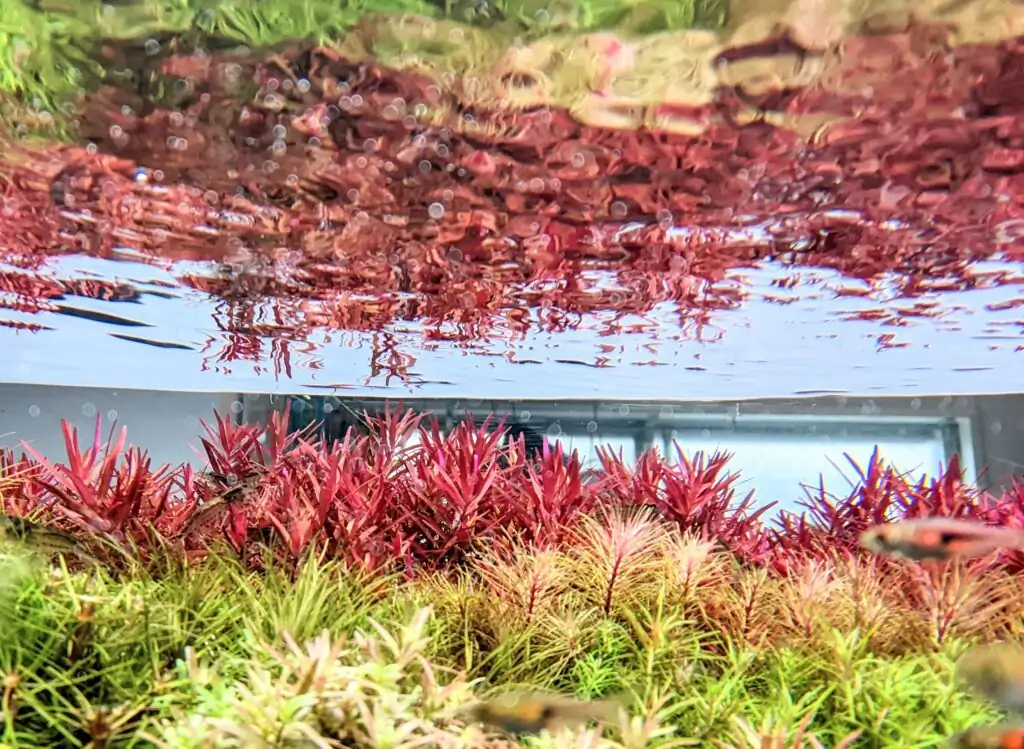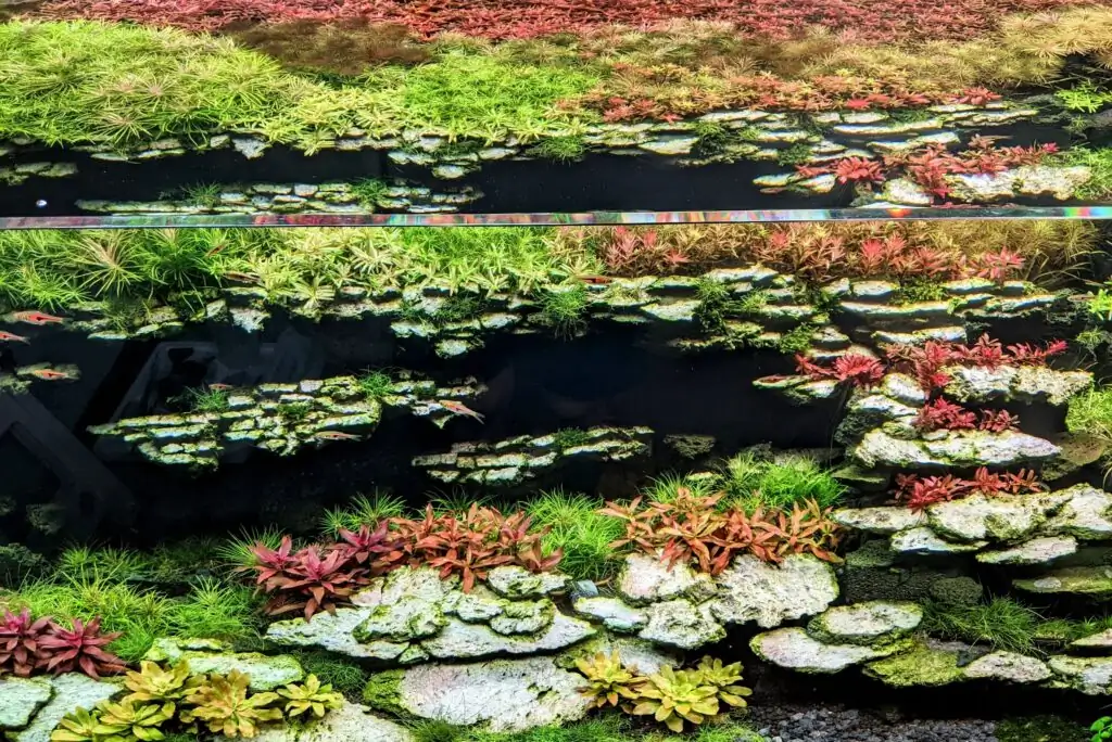 Gradually adjust the arrangement of aquatic plants by repeating trimming .