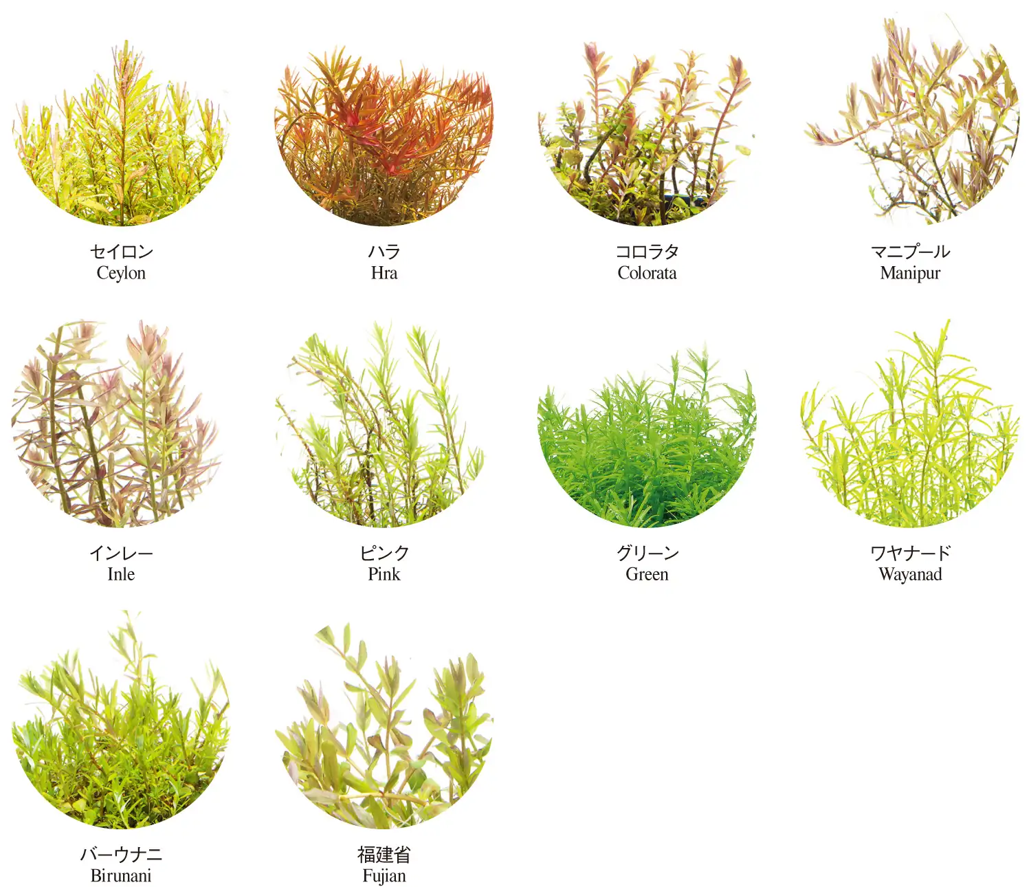 Rotala rotundifolia varies in color and leaf shape from region to region, and some enthusiasts collect them. In a layout, selecting a type that fits your vision is one of the pleasures of collecting Rotala rotundifolia. “BIO Mizukusa no Mori” and “Wabi-Kusa” monoculture series have a lineup of Rotala rotundifolia types recommended for layouts, but there are actually many more types hidden in “Wabi-Kusa” mixed types…
