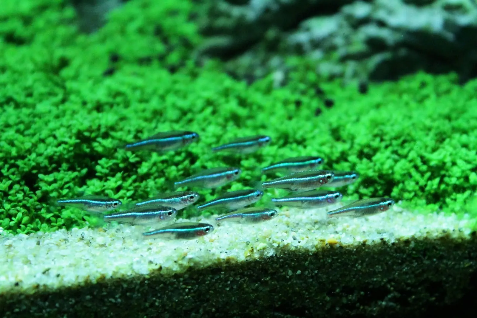 | 1. Green Neon Tetra | Medium/Hard | 200L (50 Gal) | Requires a highly stable, mature tank. |