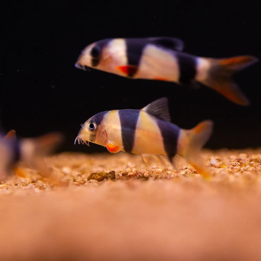 The Royal Clown Loach is a magnificent addition to your large tank, valued not just for its coloration but for its personality. The Gold/Albino mutation of the Clown Loach features a vibrant golden hue that beautifully accentuates its traditional dark stripes. Beyond their attractive appearance, they are highly intelligent, playful, and social (best kept in groups of five or more). However, they can reach a large size, requiring a high-volume tank. Crucially, they are excellent snail eradicators, a major plus for planted tank owners.